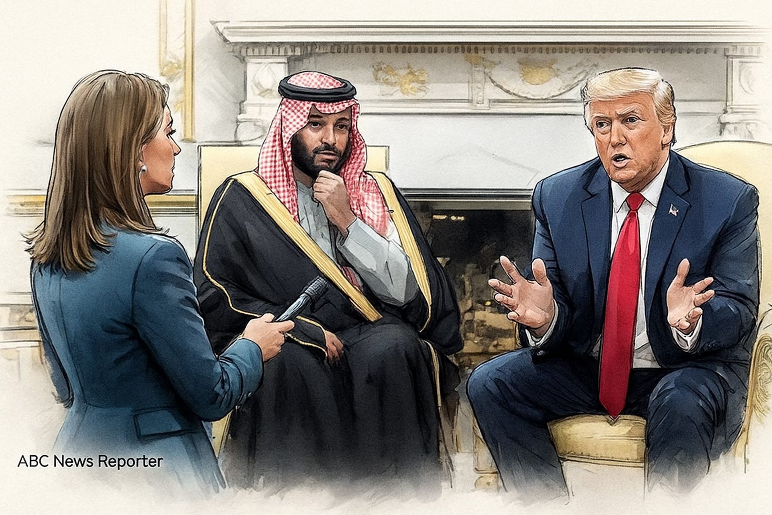 Then came the next day — when Trump publicly berated ABC’s Mary Bruce in the Oval Office while Mohammed bin Salman sat beside him. It wasn’t irritation or impatience. It was a ritual.